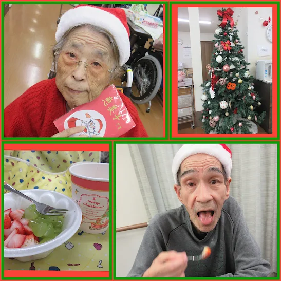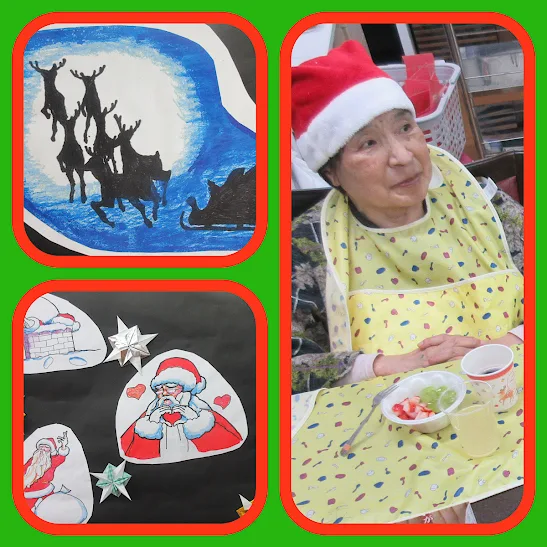 今年のクリスマス会はイラストが得意な利用者様がサンタさんの絵を書いてくださいました🎅🖋️