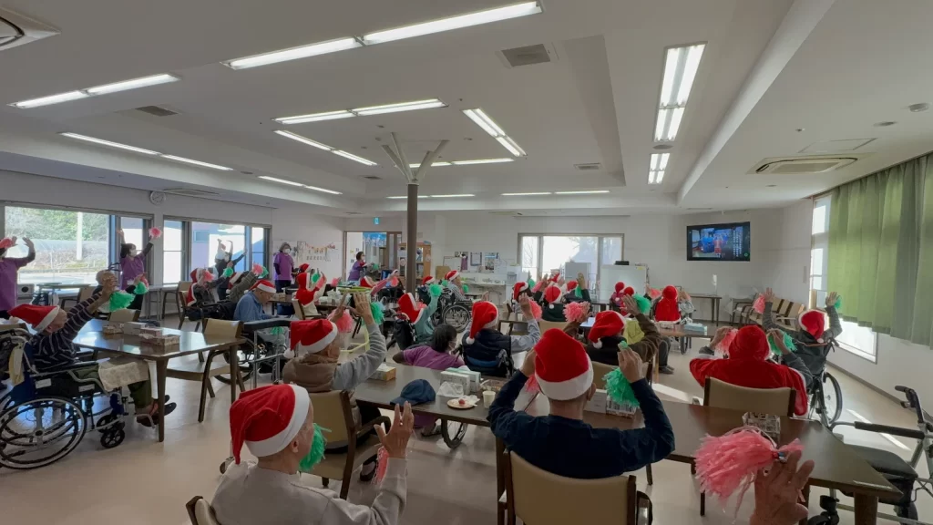 クリスマスケーキの提供と座ったままできる歌体操を皆さんで踊りました💃