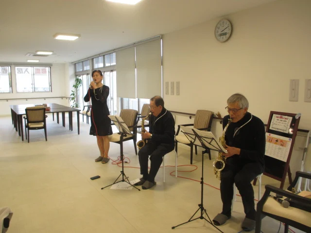 入居者様うっとり聞き惚れている方、リズムに合わせて手拍子されている方、職員へ感想を伝えてくださる方と、様々な形で楽しんでいただいたようでした。