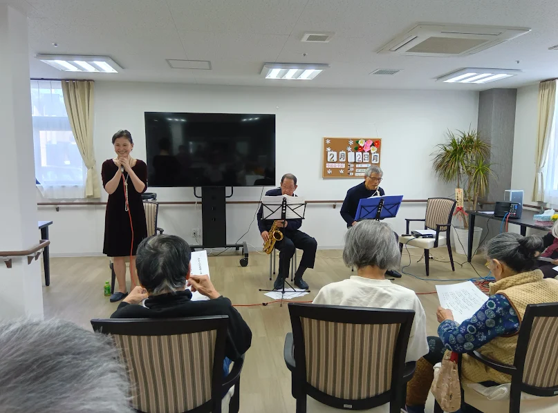 ブログ 2026.02.07初のサックス演奏会!! ケアガーデン北本深井Ⅱ ケアガーデンでお世話になっている、なごみ診療所の西谷先生によるサックス演奏会が行われました。 ノリノリ両手を挙げて楽しまれる方もおりました。素敵な時間になりました。 .