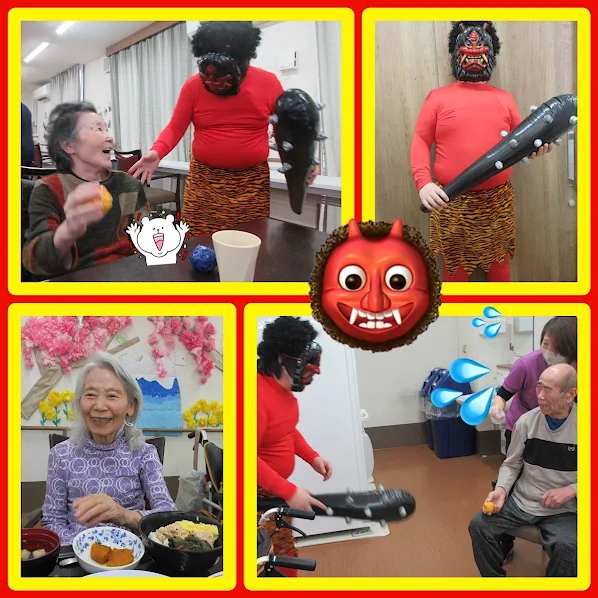 大きな声で「鬼は~外!福は~内!」と皆さん豆まきをして鬼退治できました😊