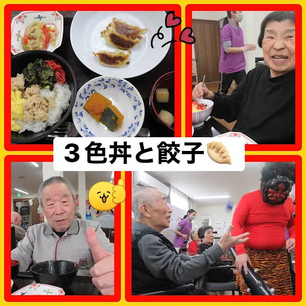 昼食には3色丼と焼きたて餃子🥟で皆さんきれいに完食です✨!
